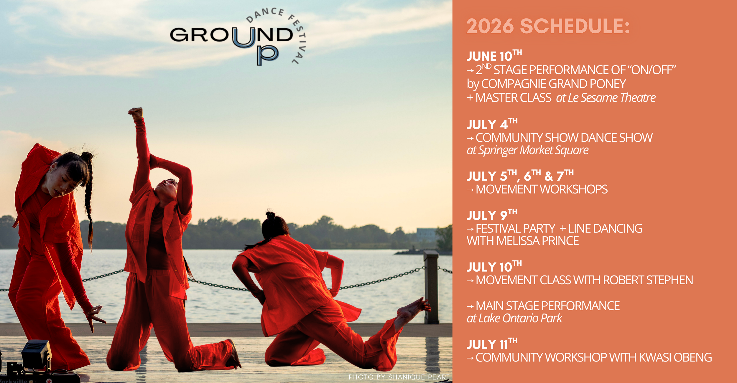Ground UP Dance Festival is Kingston’s dance series focusing on building community, providing performance platforms for emerging and established choreographers, and supporting artists throughout their journey in creation and development.