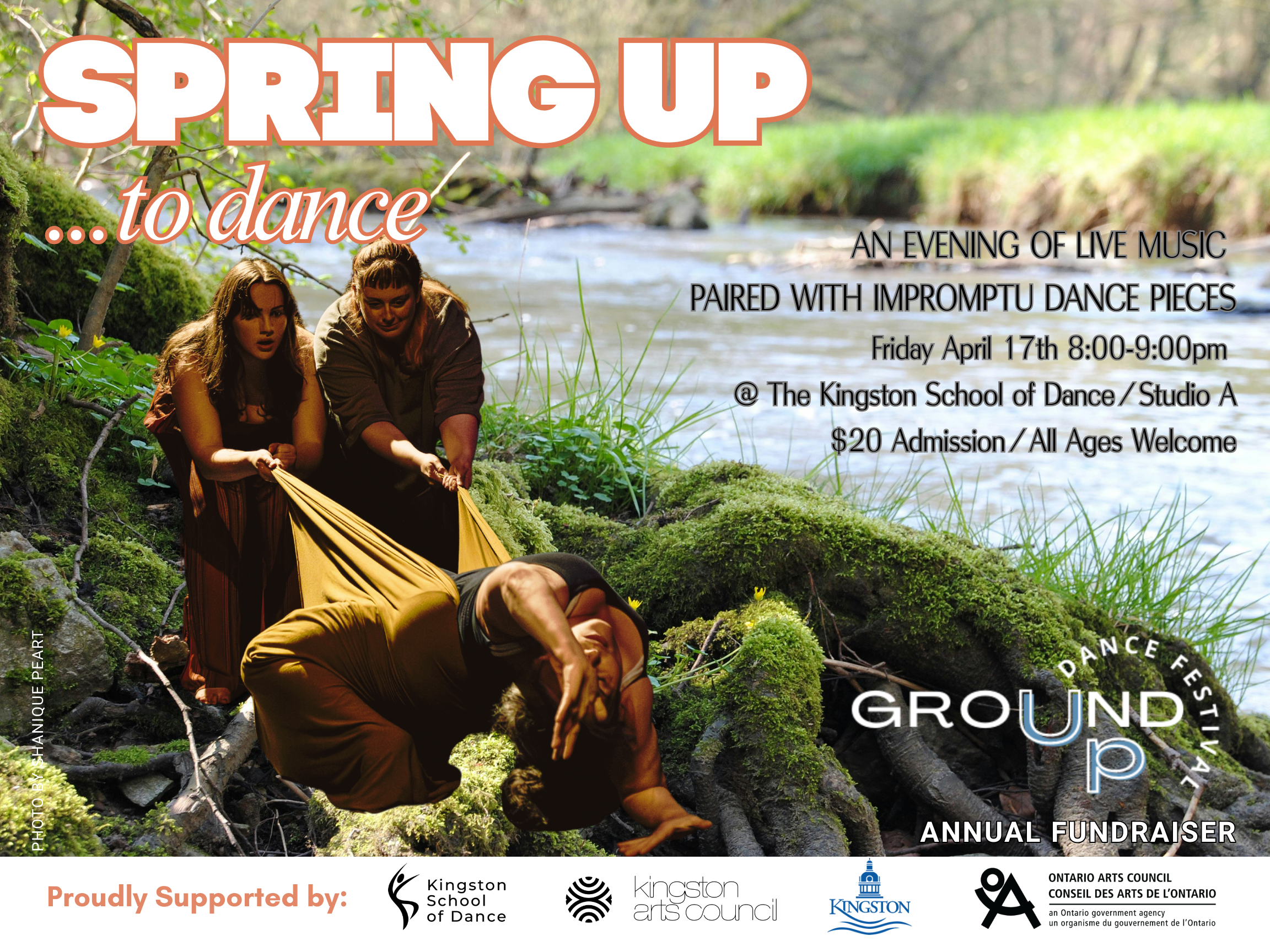 Join us for "SPRING UP… to Dance", our annual festival fundraiser, taking place Friday, April 17th from 8:00-9:00pm in Studio A at the Kingston School of Dance. This unique evening will feature live music from special musical guests and festival collaborators, paired with improvised dance scores performed by Kingston’s own Movement Market Collective. Experience the magic that happens when music and dance meet in the moment, without rehearsal or planning.